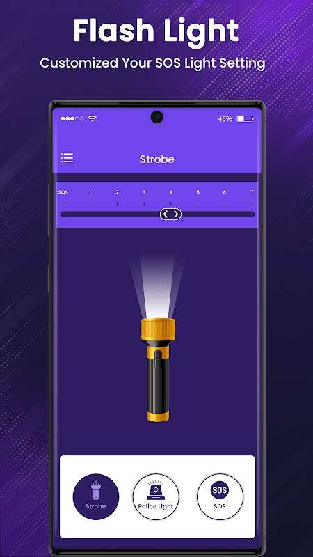 স্ট্রোবলাইট: ইউভি ফ্ল্যাশলাইট অ্যাপের ফ্রিকোয়েন্সি পরিবর্তন করা যেতে পারে, যা সত্যিই দ্রুত মিটমিট করা থেকে মাঝে মাঝে। এই টর্চলাইট টর্চ ব্যাটারি: এলইডি টর্চলাইট অ্যাপ আপনার প্রয়োজন অনুযায়ী কাস্টমাইজ করা যেতে পারে। আপনি কোন সমস্যা ছাড়াই আপনার প্রয়োজন অনুযায়ী এই অ্যাপের সমস্ত বৈশিষ্ট্য পরিবর্তন করতে পারেন।