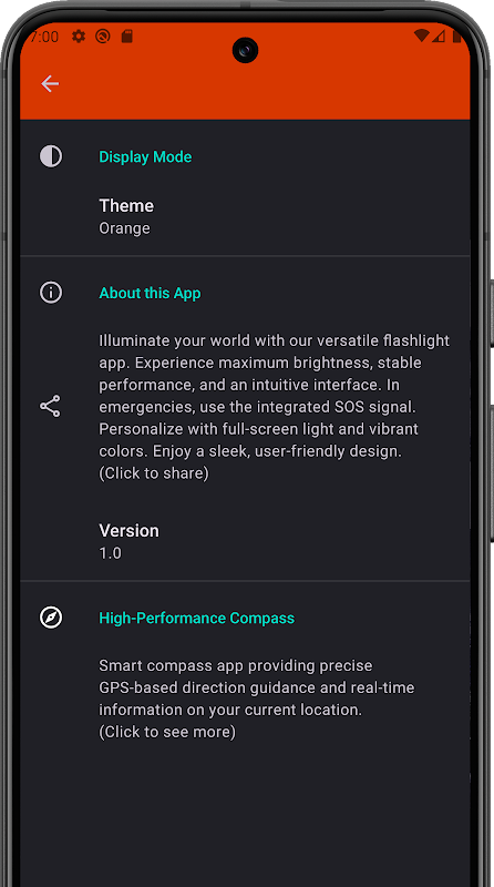 ◾ সর্বোচ্চ উজ্জ্বলতার জন্য সমর্থন: অন্ধকার জায়গায়ও উজ্জ্বলভাবে জ্বলতে সর্বাধিক উজ্জ্বলতায় ফ্ল্যাশলাইট ব্যবহার করুন।