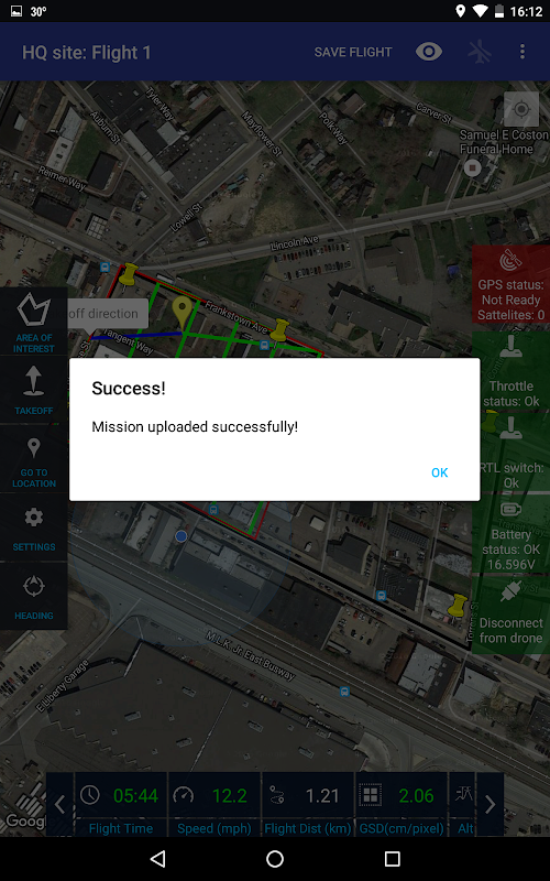 [*] ক্ষেত্র অভিযানের সময় ফ্লাইট পরিসংখ্যান ফ্লাইট পরিকল্পনা আপলোড এবং পেতে বুমের্যাং ম্যাপিং ড্রোন সাথে সংযোগ স্থাপন করুন