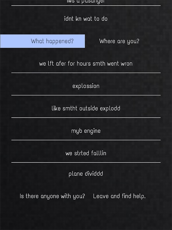 Help airplane crash survival to reach safety. Guide him with your messages. His life is in your hands. Be there. Save him.