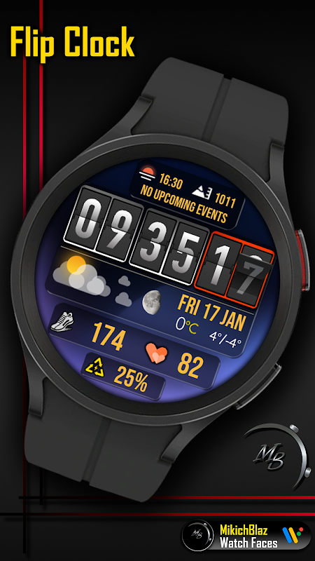 এই ঘড়ির মুখটি শুধুমাত্র Wear OS 5 বা উচ্চতর এর সাথে সামঞ্জস্যপূর্ণ।