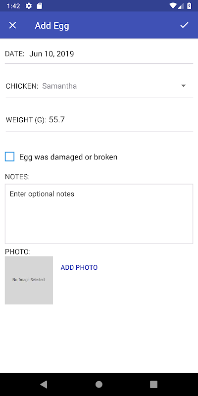 * জাত, হ্যাচ তারিখ এবং একটি প্রোফাইল ছবি সহ একটি প্রোফাইল তৈরি করতে আপনার মুরগি যোগ করুন।