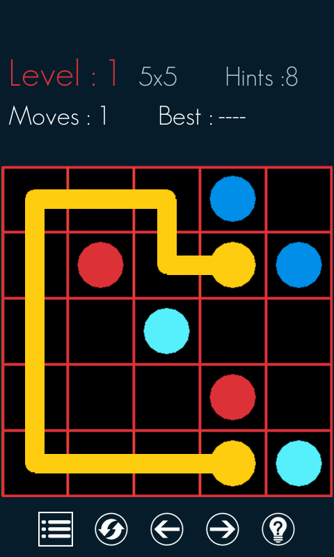 Connect matching colors with pipe to create a Flow. Pair all colors, and cover the entire board to solve each puzzle in Flow Dots Pipes. But watch out, pipes will break if they cross or overlap!