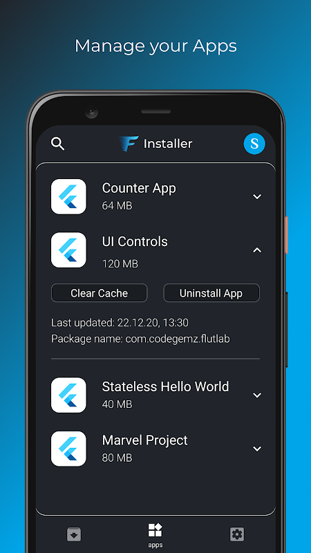 FlutLab Installer is an extension of the FlutLab website to ease the process of installation of Android applications developed with the help of FlutLab services. It reduces the routine efforts of downloading, updating, and deleting such applications on one or many Android devices.