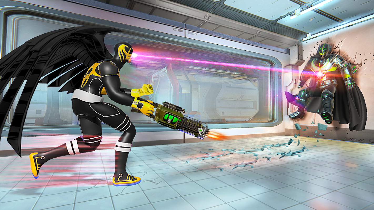 Superhero Robot Bat Chase Action in Mafia World is a complete package for fans of superhero simulator games. Experience the grand action of robot battle games in this transforming bat RPG adventure. As a superhero, go on a journey to cleanse the city from criminal elements using your unique flying bat skills.