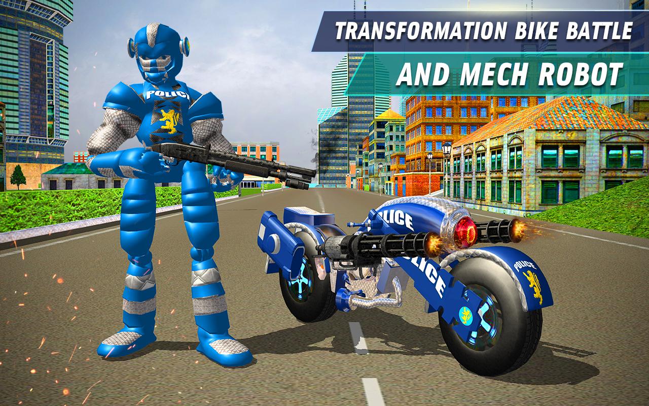 Welcome to the Vegas crime city. You are the last hope to bring justice and law in this crime city. Time to show your superpower of flying robot hero and robot rope hero in this super Hero Robot Transform Game- Crime City Games. Try one of the best and most amazing futuristic flying hero robot war games. Play as a flying robot motorbike police officer and stop robot battle and make this city without crime. Enemy robots wanted to destroy your city. Your job is to protect the city from robbers and gangsters stop them and kill all the enemy robots. Drive your futuristic grand police bike and transformed it into a futuristic robot flying bike at any time.