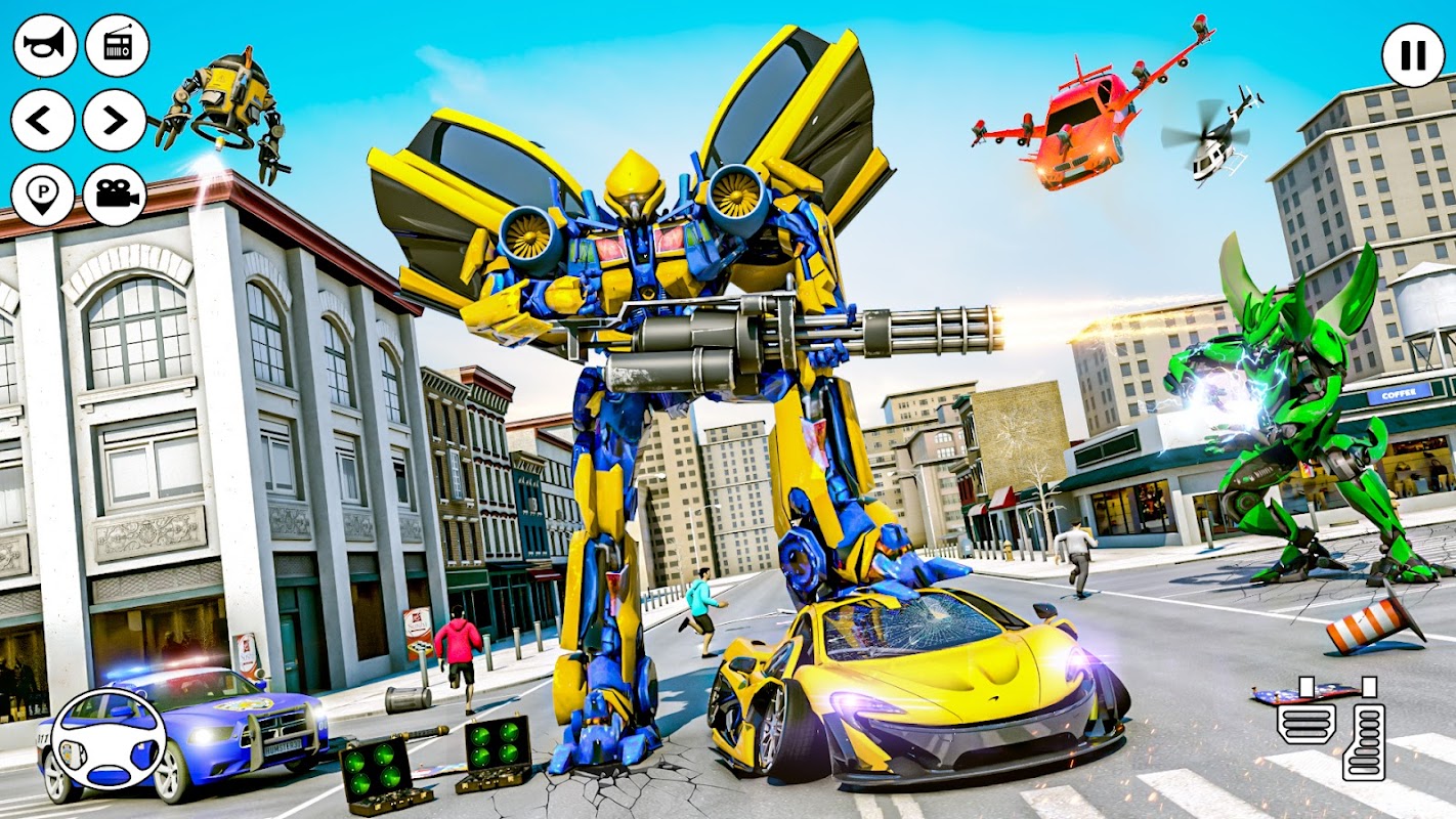 ফ্লাইং রোবট গাড়ি গেম এবং আর্মি রোবট গেমগুলির সমস্ত অপরাধমূলক যন্ত্রপাতিগুলিতে গভীর প্রভাব ফেলতে পরিস্থিতির প্রয়োজন অনুসারে আপনার উড়ন্ত রোবটকে রূপান্তর করুন। আপনার প্লেয়ারের সুপার পাওয়ারের পূর্ণ ব্যবহার করে প্রতিটি পদক্ষেপ উপভোগ করুন এবং একটি আপডেট পদ্ধতিতে হেলিকপ্টার রোবট গেম এবং ট্যাঙ্ক ওয়ার গেমগুলির সমস্ত ক্রাইম সিমুলেটরগুলিকে ধ্বংস করে শহরে স্বস্তির নিঃশ্বাস আনুন।