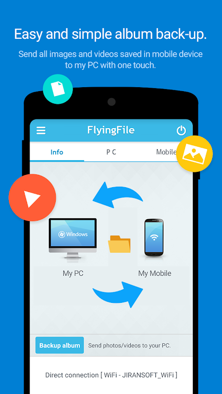 ◆ FlyingFile supports the easiest and fastest file transfer between all devices.