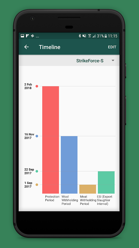 This app assists decisions about the appropriate chemical for flystrike prevention whilst observing chemical withhold periods. You can view the main chemical groups and the relevant wool, local slaughter and export interval date for each chemical. The app then lets you set an application date and prepares a timeline for that application.