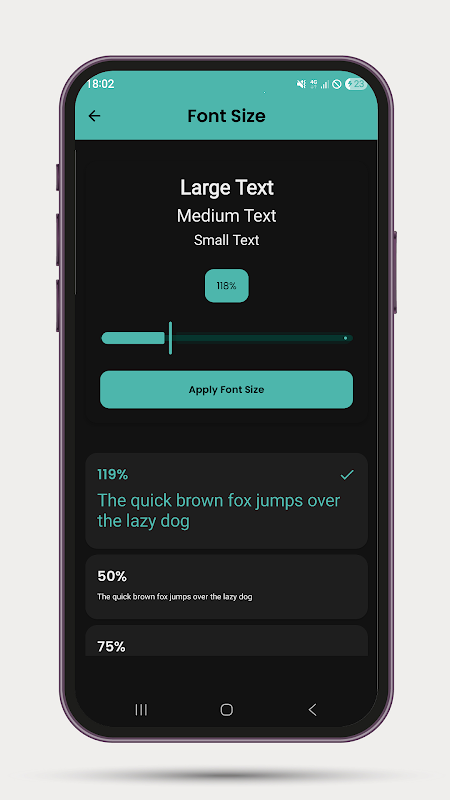 • সহজেই সিস্টেম ফন্টের আকার 50% থেকে 300% পরিবর্তন করুন