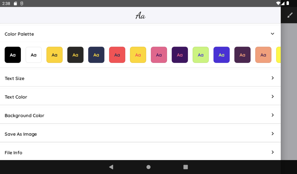 • Change font size, text color and background color.