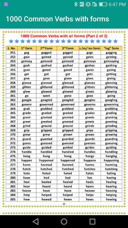 ইংরেজি ক্রিয়াপদের 1000 টি রূপ (অফলাইন) ইংরেজি ক্রিয়াপদের ফর্ম | ইংরেজি ব্যাকরণ