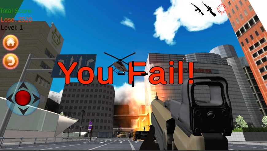 শত্রুদের লক্ষ্য করতে মোবাইল স্ক্রিনে স্লাইড করুন, হাঁটতে এবং ফায়ার করতে নিয়ন্ত্রণ বোতাম ব্যবহার করুন।