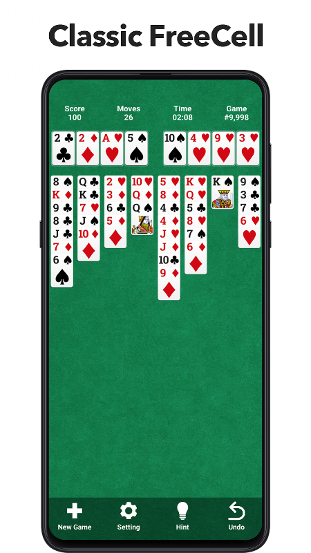 ফ্রিसेल সলিটায়ার ক্ল্যাসিক সলিটায়ার কার্ড গেম সূত্রে কৌশল এবং ধাঁধাগুলির একটি নতুন উপাদান যুক্ত করে। গেমপ্লে শুরু করা খুব সহজ তবে মাস্টার শক্ত to