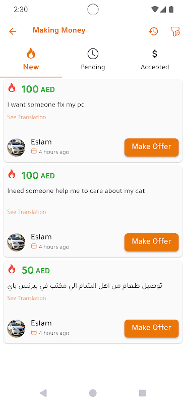 এই অ্যাপটি আপনাকে সাহায্য করার জন্য প্রস্তুত লোকেদের সাথে সংযুক্ত করে। আপনি কিছু ডেলিভারি, স্থির, পরিষ্কার বা নির্মিত পেতে চাইছেন না কেন, শুধু আপনার পরিষেবার অনুরোধ পোস্ট করুন এবং প্রদানকারীদের কাছ থেকে অফার পেতে শুরু করুন। আপনার প্রয়োজনের সাথে মানানসই সেরা চুক্তিটি খুঁজে পেতে আপনি তাদের সাথে গ্রহণ, প্রত্যাখ্যান বা আলোচনা করতে পারেন।