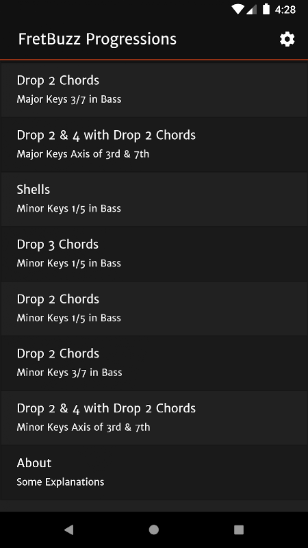 ফ্রেটবুজ প্রগ্রেসিশনস গিটারে সাধারণ জ্যাজ কর্ড অগ্রগতিগুলি শিখতে এবং অনুশীলনের জন্য একটি অ্যাপ্লিকেশন।
