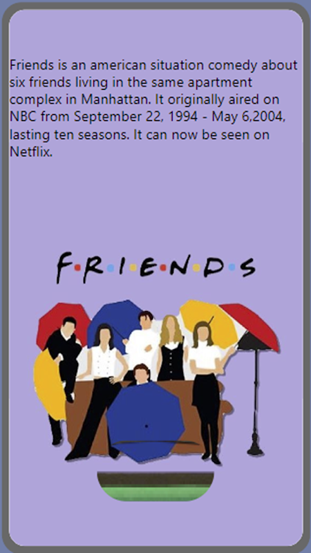 F.R.I.E.N.D.S সম্পর্কে আরও জানুন এই খেলার অক্ষর! বন্ধুদের সুপারফ্যানদের জন্য নিখুঁত উপহার! আপনি যখন কোনও অক্ষরটিতে ক্লিক করেন তখন এই অ্যাপটি সেই অক্ষর সম্পর্কে তথ্য দেখায়।