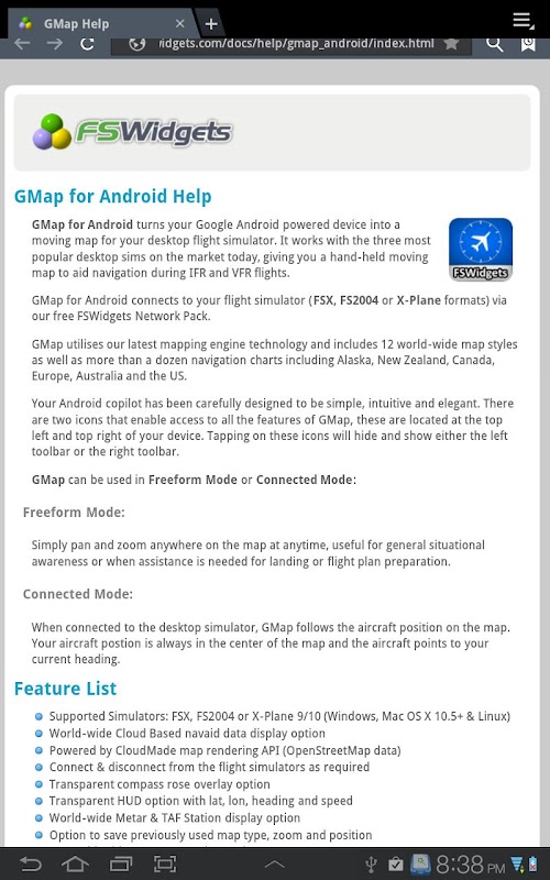 FSWidgets GMapHD (এক্স প্লেন 10.20+ 64bit মোড জন্য সমর্থন সহ) FSX, FS2004, এক্স প্লেন 9 এবং এক্স প্লেন 10 সহ আপনার প্রিয় ডেস্কটপ ফ্লাইট কাল্পনিক জন্য একটি চলমান মানচিত্র আপনার অ্যান্ড্রয়েড চালিত ফোন বা ট্যাবলেট সক্রিয়.