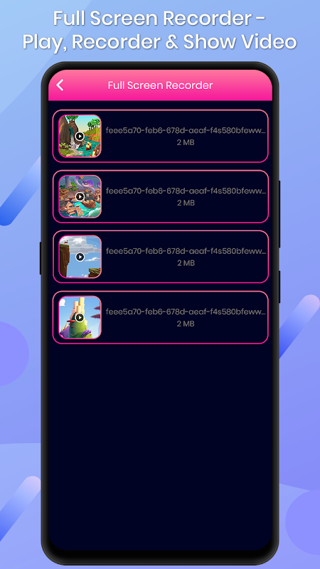 Full Screen Recorder - Play, Record & Show Video app to record your mobile screen. Looking best screen recorder app? use our one and only Record screen with audio app. Screen Recorder is the best app to record the screen when you are playing a game or also many more. Easily record your mobile screen with simple gesture touch through Screen Video Recorder