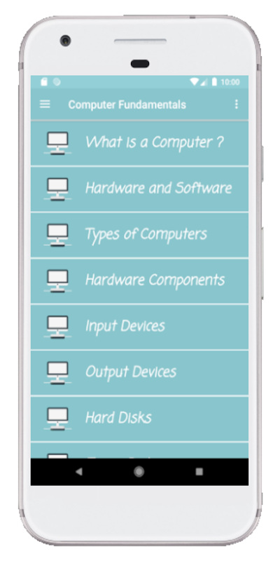 The main aim of this application "Computer Fundamental" is how to use the computers and their components.