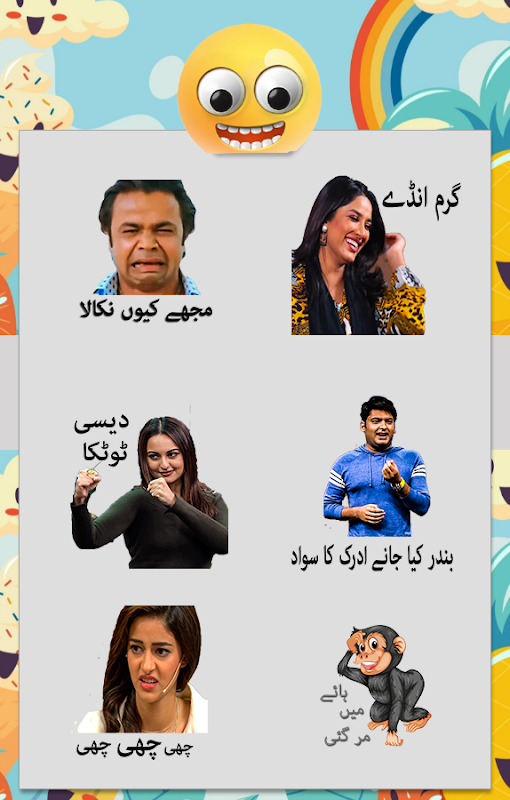 মজার উর্দু স্টিকার ডাউনলোড করুন উর্দু - আপনার মোবাইলে হোয়াটস অ্যাপ অ্যাপ্লিকেশনের জন্য বিনামূল্যে মজার ইমোজি এবং WA-এর জন্য ছবি স্ট্যাটাসের জন্য বিস্তৃত বিভাগ সহ।