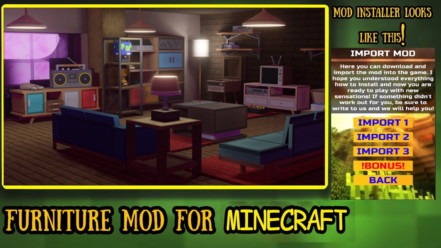 এই মোড আপনার Minecraft বিশ্বের একটি আসবাবপত্র যোগ করে.