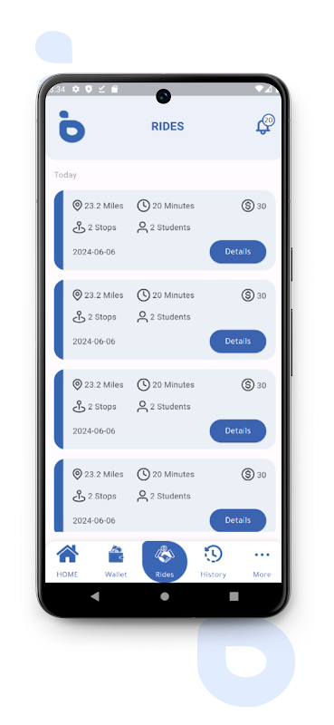 চালকরা একটি নিরাপদ ইন্টারফেসের মাধ্যমে গুরুত্বপূর্ণ রাইড তথ্য, প্রতিটি শিক্ষার্থীর মৌলিক বিবরণ এবং বিশেষ নির্দেশাবলী অ্যাক্সেস করতে পারে, যা পরিষেবাটিকে ব্যক্তিগত প্রয়োজনের সাথে অত্যন্ত মানিয়ে নিতে পারে।