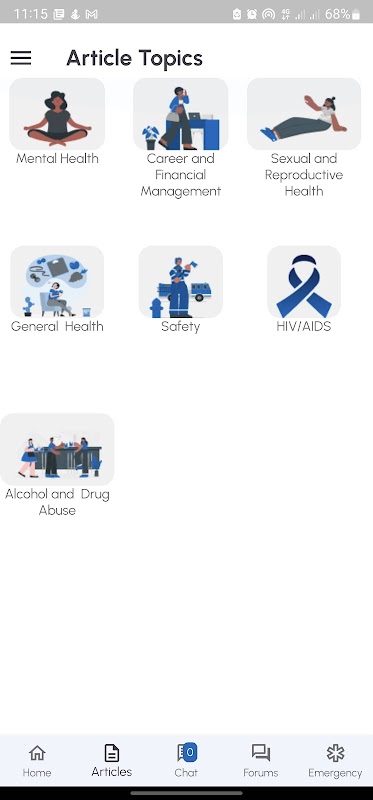 এই অ্যাপটির লক্ষ্য জিম্বাবুয়ের তৃতীয় স্তরের শিক্ষার্থীদের যৌন এবং প্রজনন স্বাস্থ্য, পেশাদার কাউন্সেলিং, পিয়ার কাউন্সেলিং পরিষেবা এবং জরুরী পরিস্থিতিতে একটি হেল্পলাইন সম্পর্কে তথ্য অ্যাক্সেস করার একটি টুল দিয়ে ক্ষমতায়ন করা।