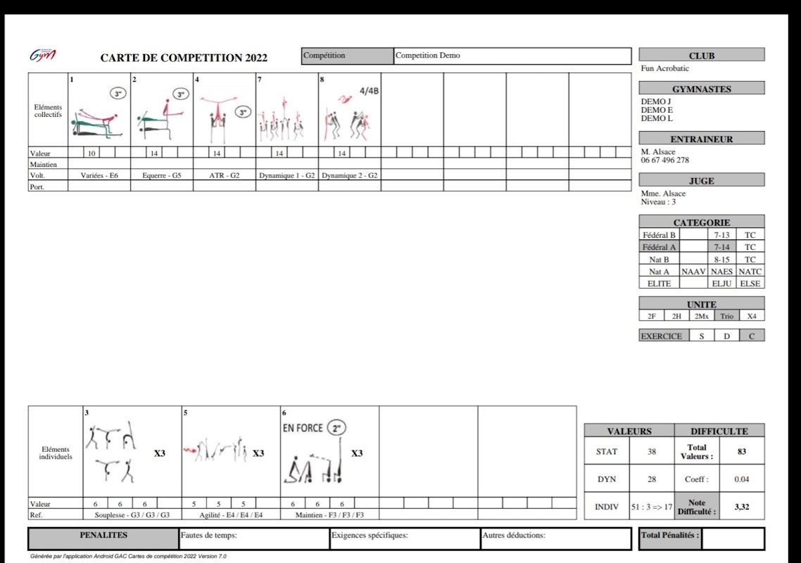 এই অ্যাপ্লিকেশনটি অ্যাক্রোবেটিক জিমন্যাস্টিকসে ফরাসি বিচারক এবং প্রশিক্ষকদের উদ্দেশ্যে। এটি ফরাসি জিমন্যাস্টিক ফেডারেশনের একটি অফিসিয়াল অ্যাপ্লিকেশন নয়।