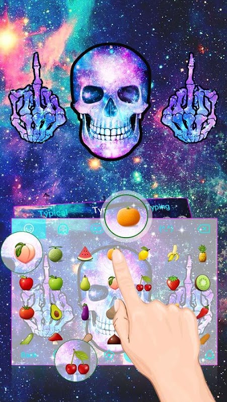 New Free Typany Galaxy skull keyboard theme will bring to your keyboard & text input a real new look & feel. Check this FREE personalized design for your Typany Emoji Keyboard right now!