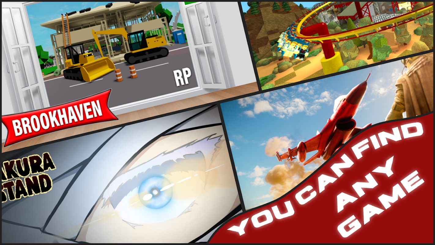 রোব্লক্সের জন্য গেম এবং মানচিত্র, যেখানে আপনি একা বা বন্ধুদের সাথে একসাথে দুর্দান্ত বিশ্রাম নিতে পারেন। অ্যাপ্লিকেশনটিতে আপনি রোবলক্সের জন্য প্রচুর দুর্দান্ত গেম এবং মানচিত্র পাবেন