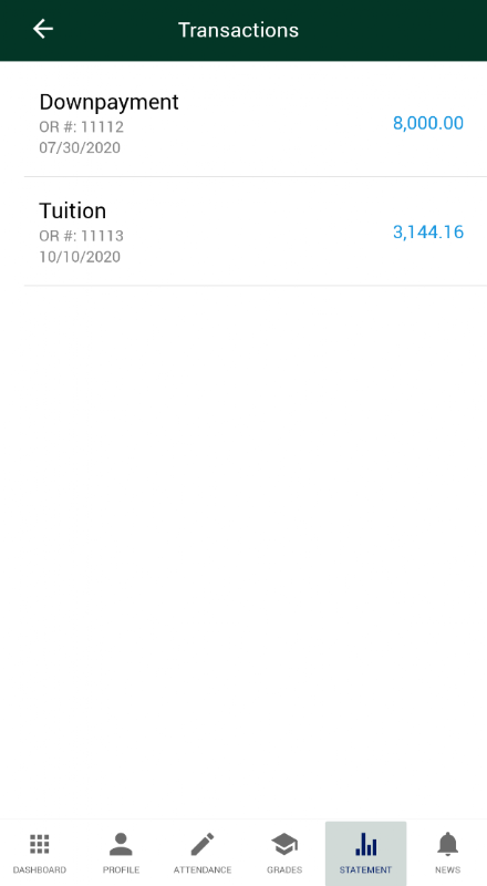 - Full Summary of School Fees are now displayed on the Statement of Account