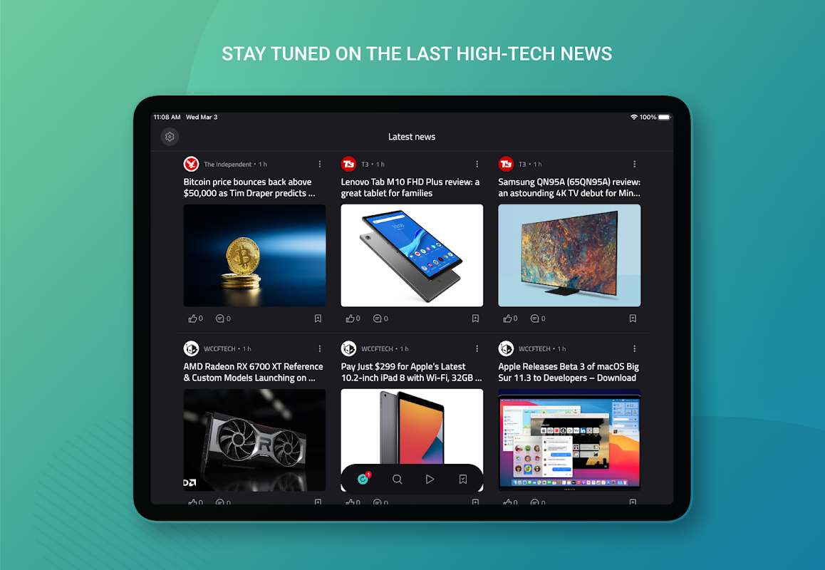 You can turn off sources of information that are not of interest to you and choose your favourite topics. Geek Tech allows you to be connected only with your favorite information sources.