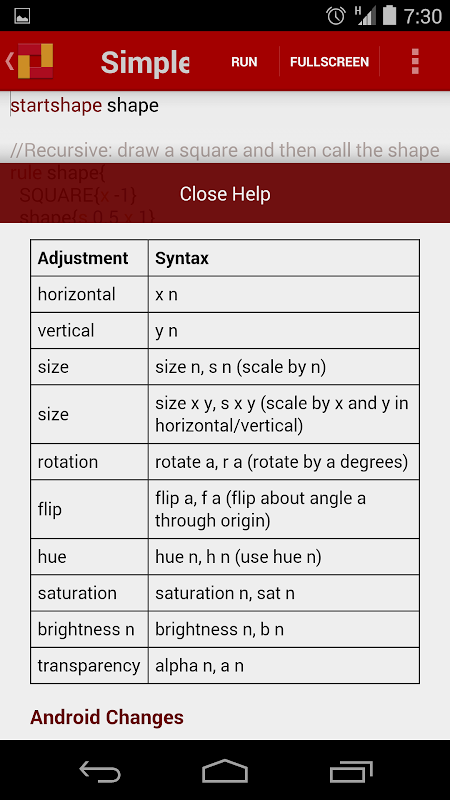 আপনি হত্তয়া এবং (স্বল্প Android এর জন্য রদবদল কনটেক্সট ফ্রি ভাষা, উপর ভিত্তি করে) একটি সংক্ষিপ্ত স্ক্রিপ্টিং ভাষা ব্যবহার অভিব্যক্ত যে সুন্দর গ্রাফিক্স তৈরি তৈরি করতে পারেন ব্যবহার করে.