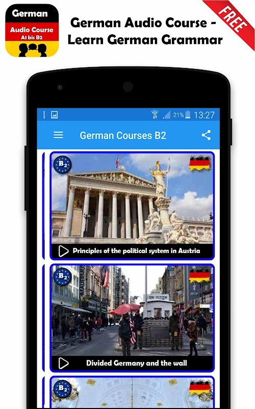 এই অ্যাপ্লিকেশন অডিও অডিও কোর্স - শিখুন জার্মান ব্যাকরণ আপনাকে সাধারণ ইউরোপীয় রেফারেন্স অনুযায়ী জার্মান (এ 1) থেকে (বি 2) প্রথম স্তরে যেতে সহায়তা করবে।