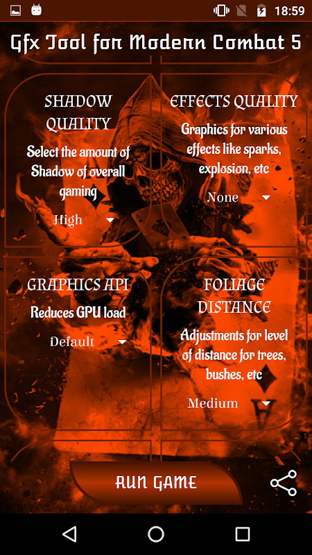 Ranging from mid range to flagship phones You can use this tool to optimize and improve MODERN COMBAT 5 game graphics for better experience.