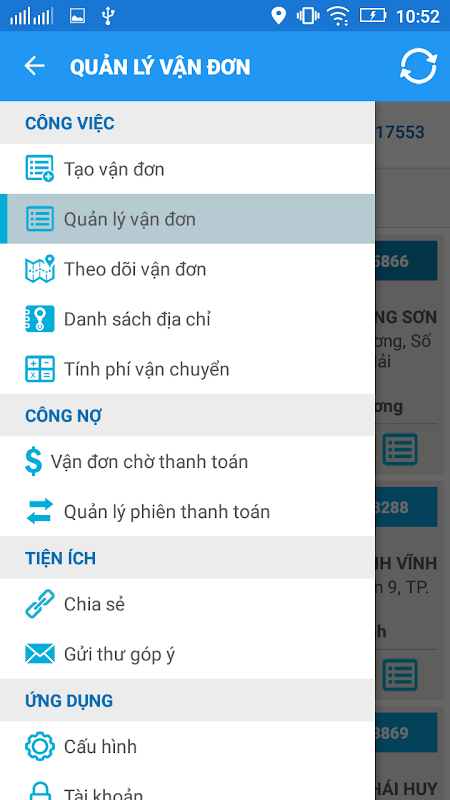 - Xem chi tiết thông tin vận đơn, trạng thái, và lịch sử vận đơn