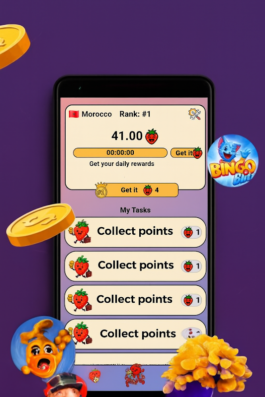 * প্রতিদিনের কাজগুলি শেষ করে "স্ট্রবেরি" সংগ্রহ করুন।