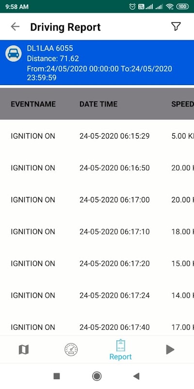 • View exact trace of route driven with time stamps.