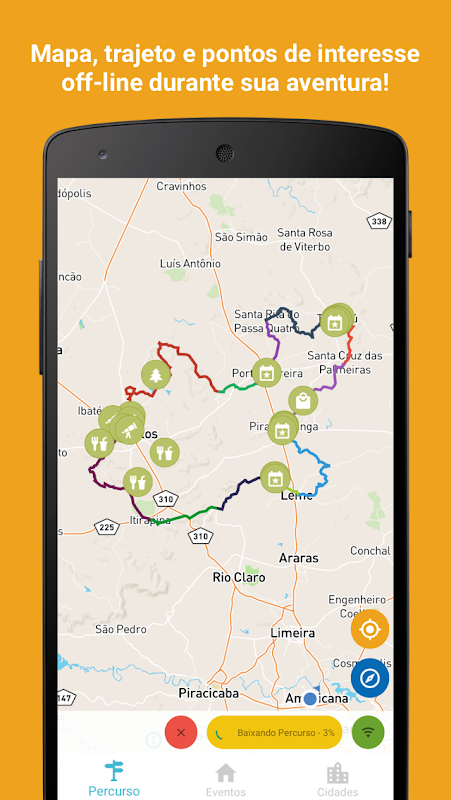 A principal funcionalidade é oferecer a localizar em tempo real com mapas offline, além de pontos de interesse ao longo do roteiro e das cidades.