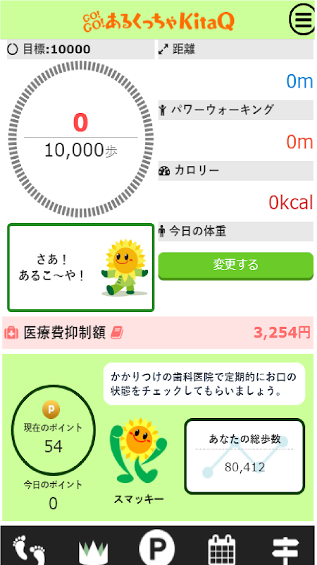 পদক্ষেপের সংখ্যা অনুসারে, কিটাকুশু শহরের স্বাস্থ্য চিত্র চরিত্র "স্মাকি" থেকে উত্সাহের একটি বার্তা প্রদর্শিত হয় এবং মজা করার সময় আপনি হাঁটা উপভোগ করতে পারেন।