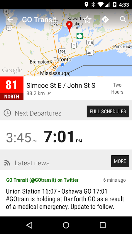 এই অ্যাপটি গ্রেটার টরন্টো এবং হ্যামিল্টন এরিয়া জিও বাসের তথ্য মন্ট্রান্সিটের সাথে যোগ করে।