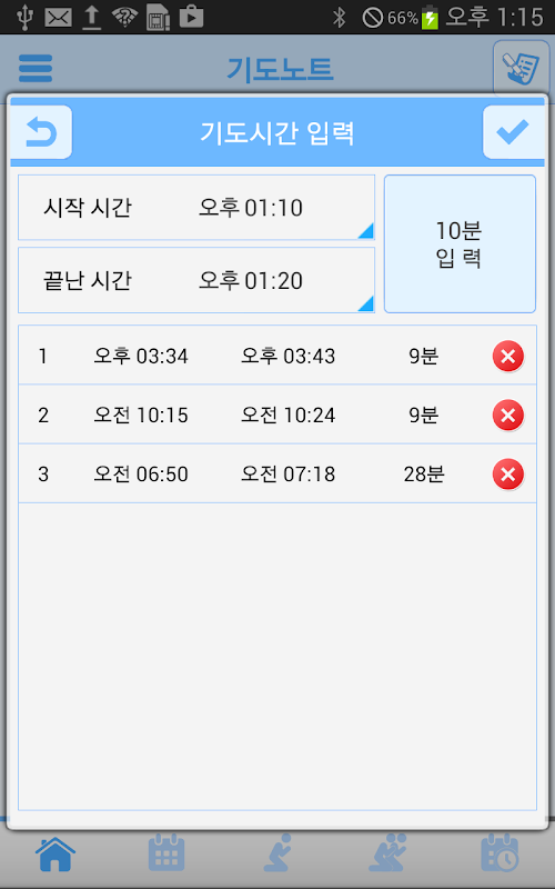 그리고 하루에 목표 기도시간을 설정하여 기도생활을 해보세요.
