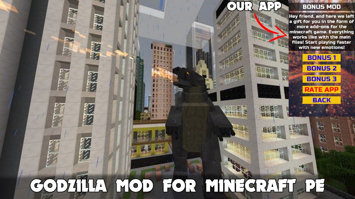 ✅ প্রধান গডজিলা মোড এবং অ্যাডন ছাড়াও, একটি মানচিত্র, মোড বা স্কিন আকারে সবসময় একটি বোনাস থাকবে!