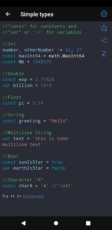 • অ্যাপ্লিকেশনের সমস্ত উদাহরণ অফলাইনে উপলব্ধ। ইন্টারনেট সংযোগ উপলব্ধ না থাকলে অ্যাপ্লিকেশনটি ব্যবহার করা যেতে পারে।