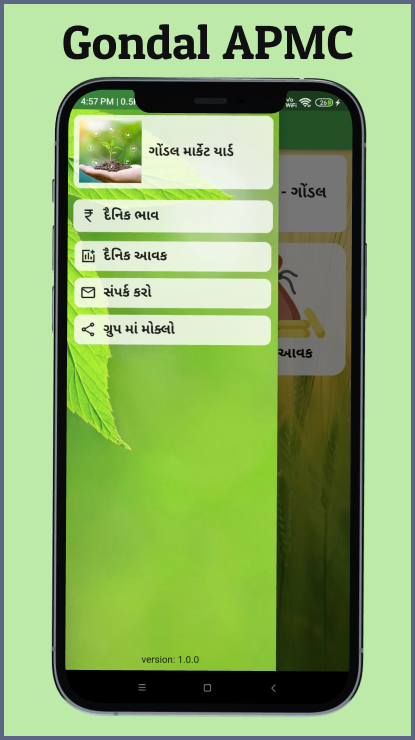 গোন্ডাল এপিএমসি - দৈনিক বাজার ভাব অ্যাপটি সৌরাষ্ট্র, গুজরাটের কৃষকদের গোন্ডাল মার্কেট ইয়ার্ডের (এপিএমসি) জানসি ও সবজির দৈনিক দাম জানতে সাহায্য করে। বিশেষত, রাজকোট, আমরেলি, জুনাগড়, পোরবন্দর, জামনগর, দ্বারকা ইত্যাদি শহর ও গ্রামের খেদুত।