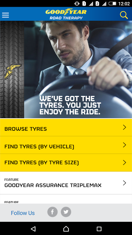 Goodyear App is designed to help you select the tyres that meet your need