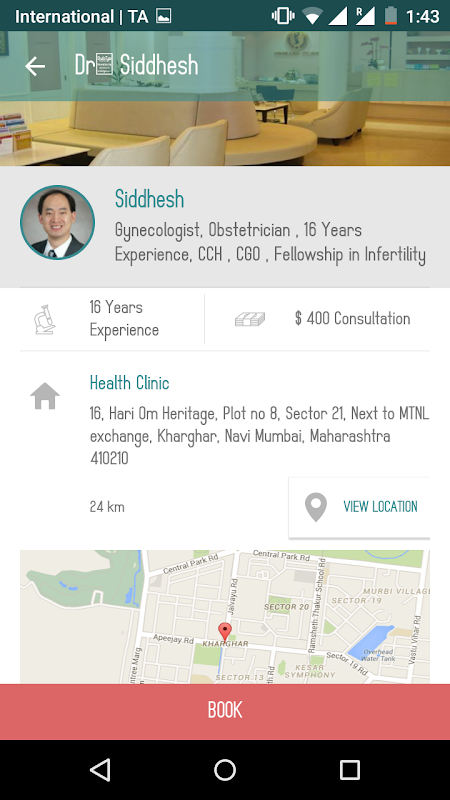 - View Doctor's profile, years of experience, qualification, fees, location & clinic's images.
