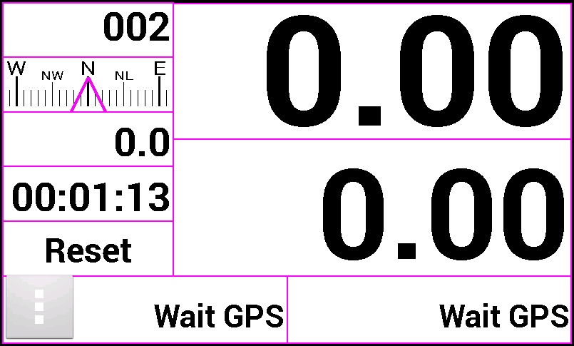 বিভিন্ন অতিরিক্ত (সময়, বিরাম, উচ্চতায় গতি, ইত্যাদি) সঙ্গে 4 কনফিগারযোগ্য বক্স আছে, না করিয়ে নিজেই RESET উপরে দুটি ক্ষেত্র জিপিএস স্থানাঙ্ক হয়.