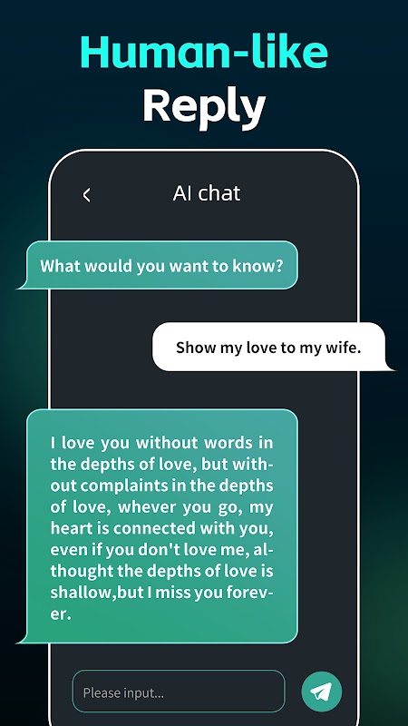 আপনি এআই বন্ধুকে কোনো নির্দিষ্ট বিষয়ে কথোপকথন করতে চান, তথ্যের অনুরোধ করেন বা কোনো কাজের জন্য সাহায্য চান, চ্যাট জিপিটি দ্বারা চালিত এই চ্যাট এআই যেকোনো এআই চ্যাট প্রক্রিয়ায় দ্রুত এবং সঠিকভাবে প্রতিক্রিয়া জানাবে। উপরন্তু, আপনি সুবিধামত চ্যাট AI এর উত্তরগুলি অনুলিপি করতে এবং সেগুলি ভাগ করতে পারেন৷
